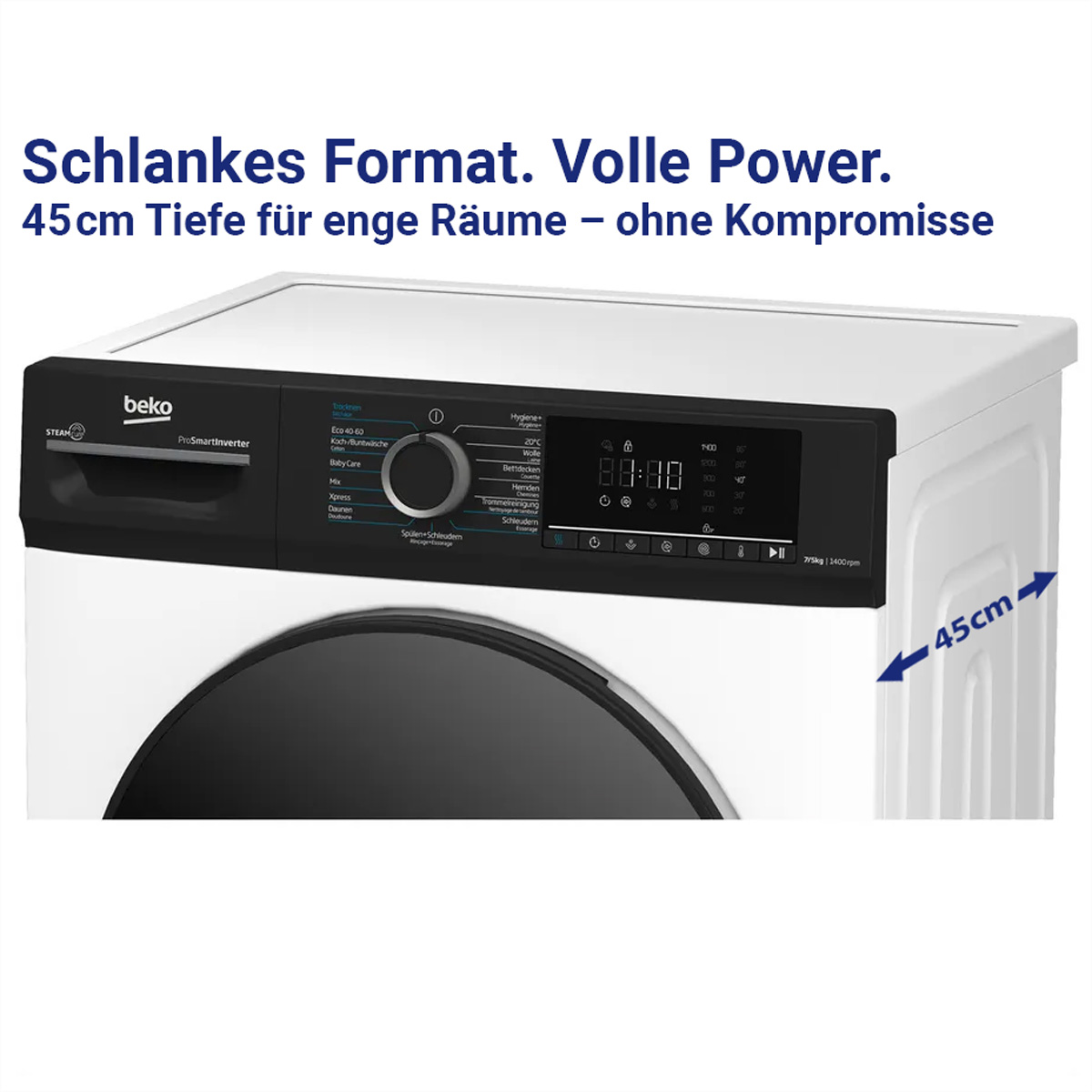 Der Beko Waschtrockner WTTS210 kombiniert die Vorteile einer Waschmaschine und eines Trockners in einem Gerät, was ihn zur idealen Wahl für Haushalte mit begrenztem Platz macht.