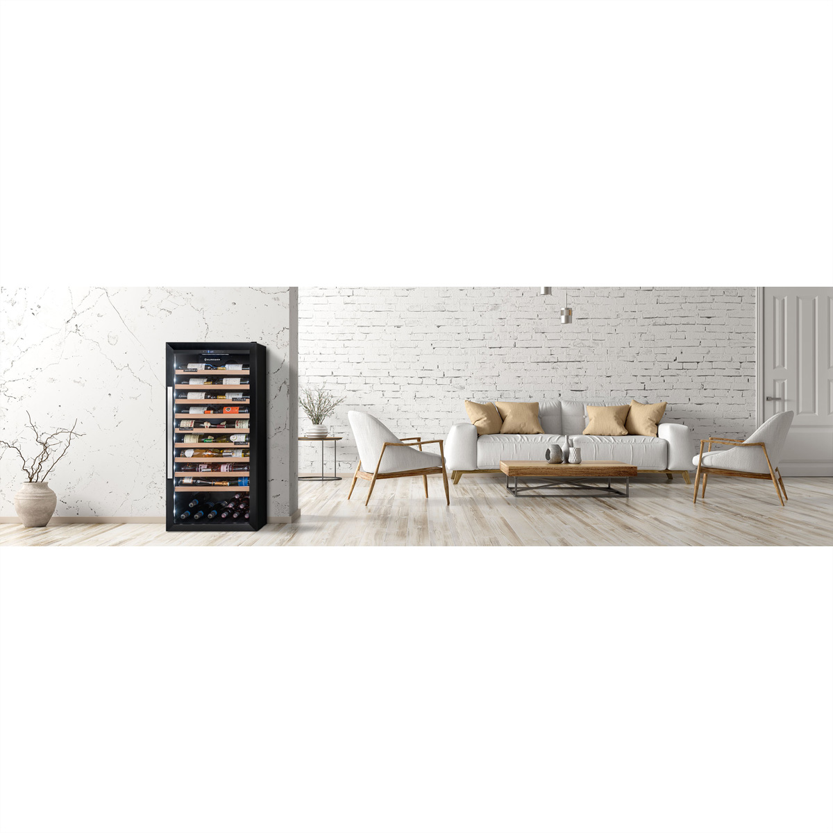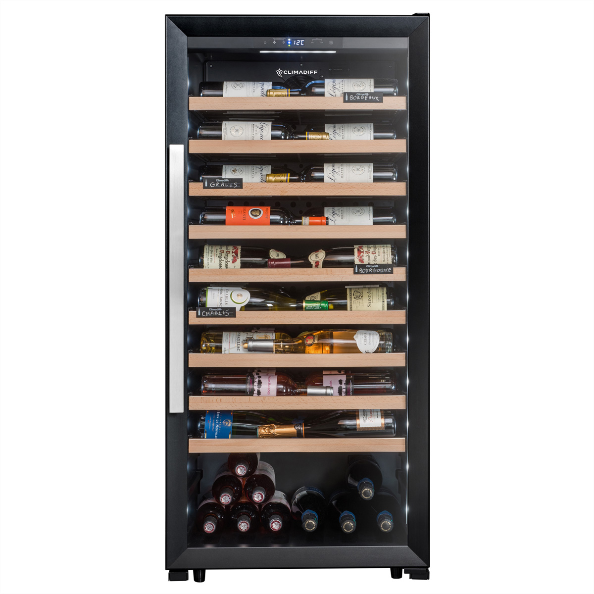 Der Climadiff CPF100B1 Weinkühlschrank bietet Platz für 98 Flaschen, eine flexible Temperaturregelung von 5–20°C und eine elegante Glastür für stilvolle Weinlagerung.