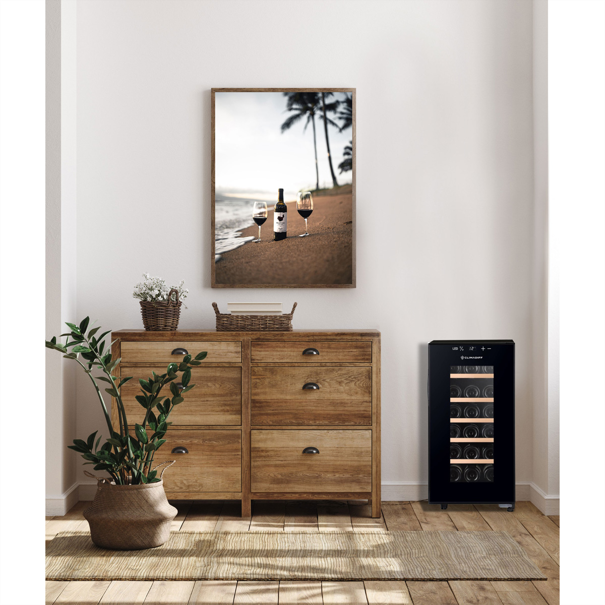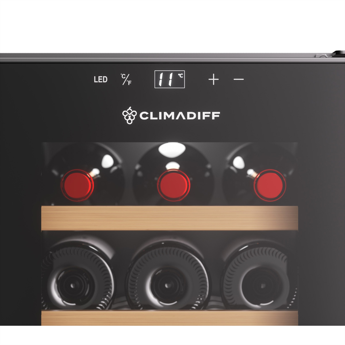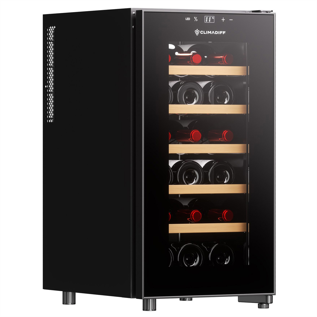 Der Climadiff Weinkühlschrank CUVEE18 bietet optimale Lagerbedingungen für bis zu 18 Flaschen mit einer stabilen Temperaturzone und einem eleganten freistehenden Design.