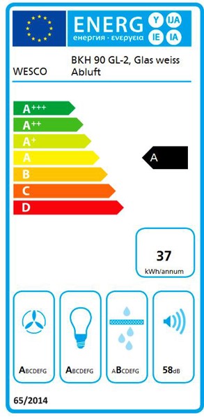 Wesco BKH 90 GL-2 Abluft Kopffreihaube Glassline Glas weiss, 4011574-010