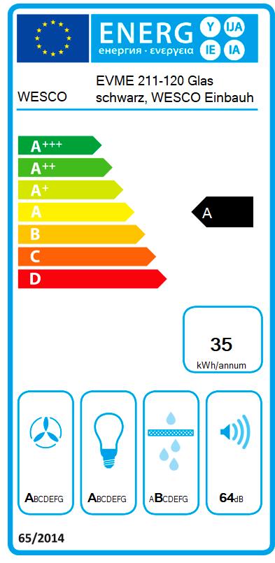 WESCO EVME 211-120 Umluft Glas schwarz, Einbauhaube