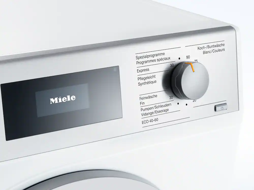 Waschmaschine Professional, Kleiner Riese, elektrobeheizt, mit Ablaufpumpe und zielgruppenspezifischen Programmen. Leistung 9 kg in 49 min. Trommelvolumen 73 l, Füllgewicht 9,0 kg Getestet für die intensive Nutzung – einmalige Miele Qualität Sprachneutrale Blende mit Drehwahlschalter – M Select