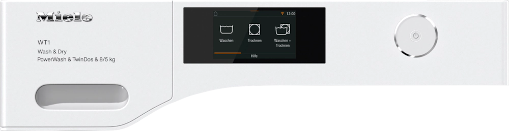 WT1 Waschtrockner mit TwinDos und QuickPower – ganz schnell ausgehfein auf Knopfdruck, Automatische Waschmitteldosierung auf Knopfdruck – TwinDos, Waschen und Trocknen in kürzester Zeit – QuickPower, Ihr Lieblingsstück ausgehfein in < 1 Stunde – Single Wash&Dry, M Touch – Steuern über direktes Tasten oder einfaches Wischen, Miele@home – clever vernetzt für mehr Möglichkeiten