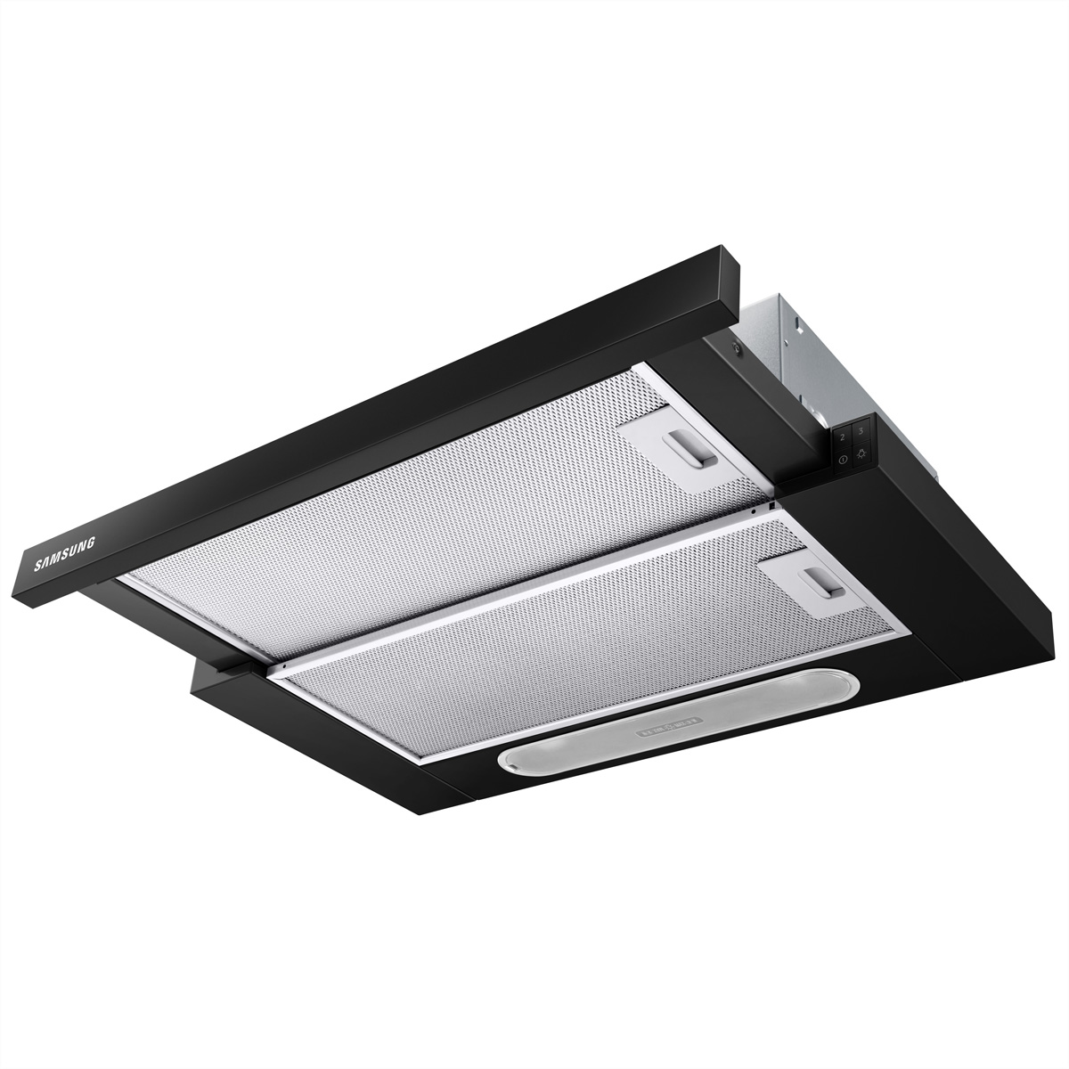 Der 60 cm breite Wand-Dunstabzug NK24M1030IB von Samsung sorgt mit drei einstellbaren Leistungsstufen für frische Luft beim Kochen.