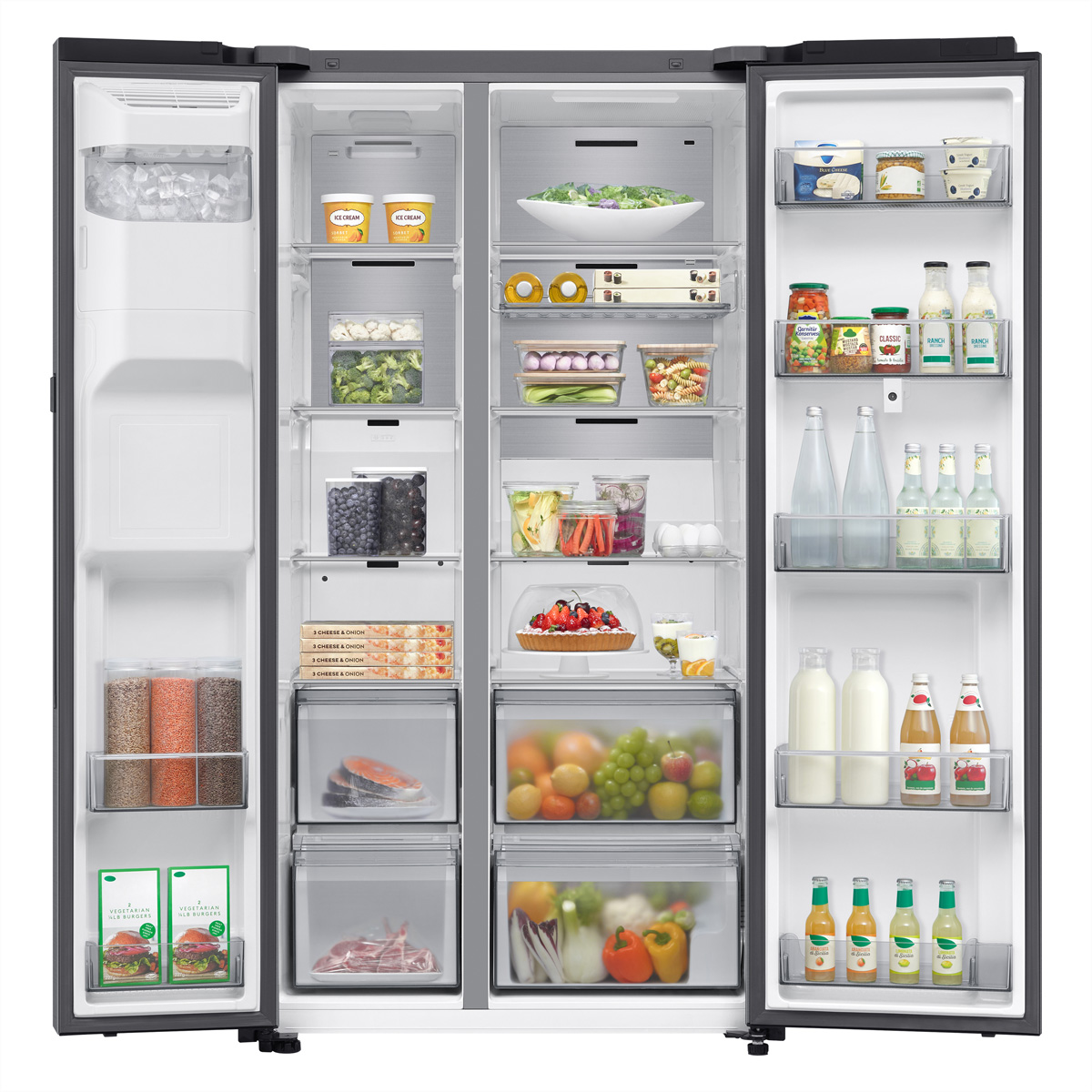 Damit bleiben Lebensmittel länger feucht und frisch***. Twin Cooling Plus™ passt die Temperatur- und Luftfeuchtigkeitswerte sowohl im Kühl- als auch im Gefrierschrank an. Mithilfe unabhängiger Verdampfer, Lüfter und Lüftungsschlitze werden perfekte Bedingungen geschaffen, um Lebensmittel so zu lagern, dass ihr natürlicher Geschmack erhalten bleibt. Da sich Gerüche nicht zwischen den Fächern vermischen können, bleiben Ihre Zutaten frisch und schmackhaft. Dank der hohen Luftfeuchtigkeit im Kühlschrank bleiben verderbliche Früchte und Gemüse länger feucht und frisch – Sie müssen sie nicht mehr einpacken, wodurch weniger Abfall entsteht und Ihre Lebensmittel länger frisch bleiben.