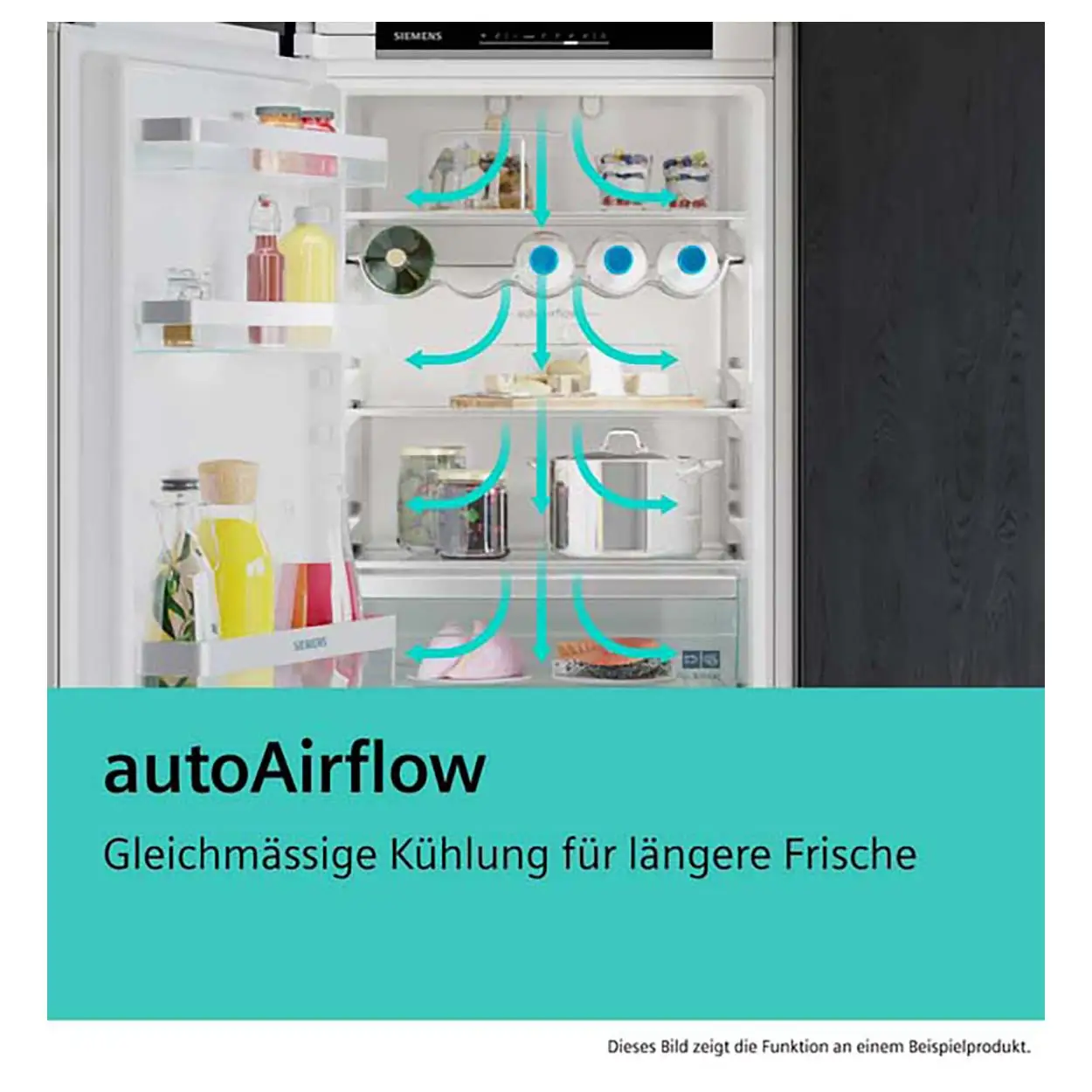 Perfekte Lagerung mit temperaturgeregeltem Gefrierfach, hyperFresh, LED-Beleuchtung, superCooling, autoAirflow, SoftClosing Door, safetyGlas-Ablagen, Dieser Siemens Einbaukühlschrank kombiniert fortschrittliche Technologie mit praktischem Design, um Ihre Lebensmittel stets optimal und effizient zu lagern. Perfekt für jeden Haushalt, der Wert auf Frische und Qualität legt.