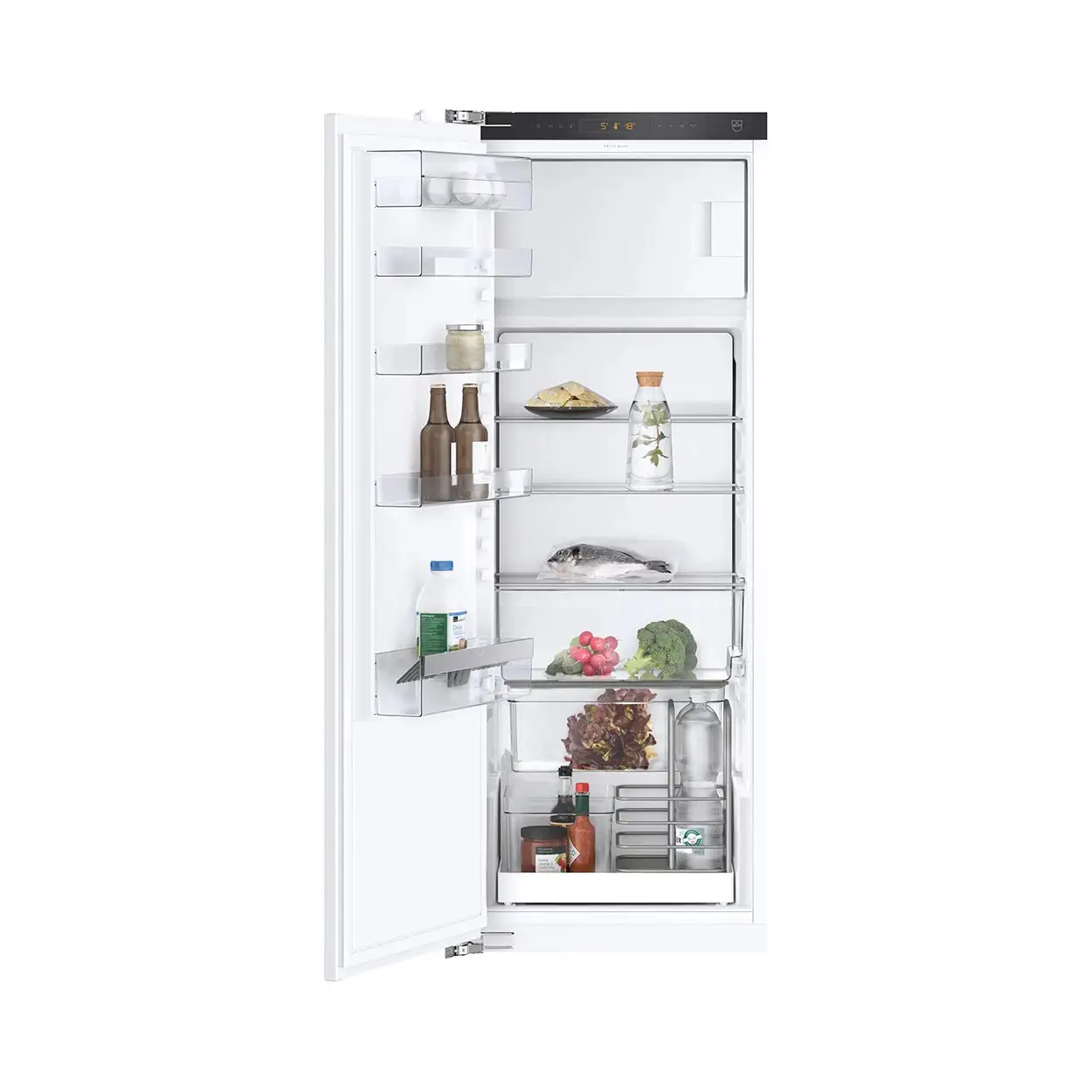 Merkmale Kühlschrank - Halbtablar - Sabbat-Modus - Türanschlag umkehrbar: Ja mit Zubehör - Premium Swiss Quality - Nutzinhalt total: 242 l - Nutzinhalt Kühlfach: 214 l - Nutzinhalt Gefrierfach: 29 l - Integriertes Gefrierfach - SoftClose - Ablageflächen im Kühlteil: 3 - Verstellbare Ablageflächen im Kühlteil: 1 - Behälter im Kühlteil: 1 - Flaschenauszug - Türabstellregale und/oder Behälter: 5 - Türfächer mit Klappe oder Schiebetür: 1 - Eierablagen: 12 - Fächer im Innenraum (Gefrierteil): 2 - Eiswürfelschalen: 1
